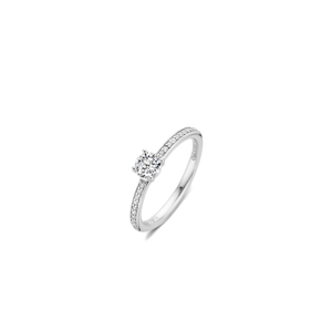 TI SENTO ring met zirkonia's pavé gezet. De grote zirkonia is gezet in een solitair zetting en zorgt voor extra glinstering. Deze ring is voorzien van een rhodium plating en kan goed gecombineerd worden met andere ringen uit TI SENTO's Mix & Match reeks. Zo kun je je eigen sieraad samenstellen!