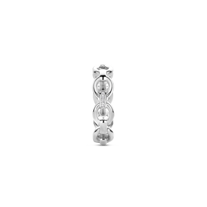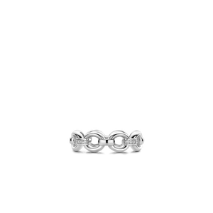 Deze TI SENTO zilveren ring 12292ZI pronkt met iconische ronde schakels die omhuld zijn door kleine luxueuze pavé schakels. De ring is vervaardigd uit de hoogste kwaliteit 925 sterling zilver en voorzien van een laagje platinum om het te beschermen tegen slijtage door dagelijks gebruik en het stralend te houden. Het luxe pavé bestaat uit met de hand gezette glinsterende witte cubic zirconia (CZ) stenen. Dit iconische stuk hoort thuis in elke sieradencollectie. Vind plezier in het mixen en matchen van dit design met andere ringen en creëer je eigen ring-party. Al onze ringen zijn nikkelvrij en hypoallergeen.