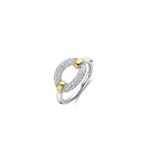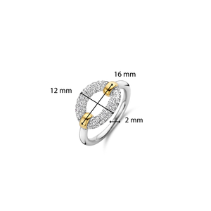 Deze TI SENTO vergulde pavé ring 12293ZY is verrijkt met onze signature brede glinsterende pavé schakel. De ring is vervaardigd uit de hoogste kwaliteit 925 sterling zilver en verguld. Het schitterende pavé bestaat uit met de hand gezette witte cubic zirconia (CZ) stenen. Deze luxueuze classic met een twist is ontworpen om in de spotlight te staan! Het stralende middelpunt van je look. Welke kant je de ring ook draait, het glinstert altijd. Al onze ringen zijn nikkelvrij en hypoallergeen.