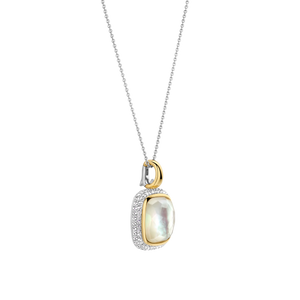 Deze vergulde TI SENTO hanger 6828MW toont een grote parelmoer kussenvormige steen in een geelvergulde zetting versierd met glinsterend pavé. Een harmonieuze mix van strakke geometrie en luxueuze tij... lees meer