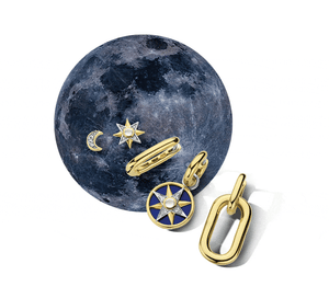 Stapel, combineer of draag onze kosmische sieraden samen met gedurfde of minimalistische stukken uit onze kerncollectie. Het samenspel van stijlen zal een betoverende en unieke look creëren die perfect is voor elke gelegenheid.