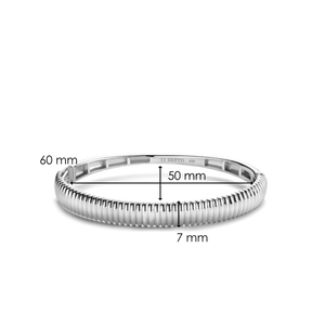 Deze TI SENTO chunky zilveren bangle 2957SI heeft een kenmerkende geribbelde structuur. De armband is gemaakt van 925 sterling zilver en voorzien van een rijke coating van rhodium om het te beschermen en de glans te behouden. Een geraffineerd en tijdloos statement piece. De extra veilige sluiting is speciaal ontworpen zodat dit sieraad altijd bij je blijft.