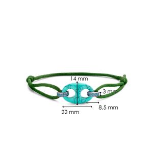 Une splendeur ce bracelet fil vert avec une note de turquoise avec des strass bleu clair qui lui donne ce côté très classe et distingué et il peut jouer le côté sport chic😍