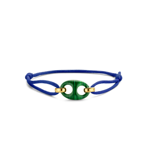 Deze TI SENTO vergulde zilveren armband 2985MA is in het midden gedecoreerd met een malachietgroene koffieboon charm. Een klassiek symbool in een nieuw, speels gedurfd jasje. De lapis blauwe zijden koord om de pols heeft aan elk uiteinde een vergulde schakel. De armband is vervaardigd uit 925 sterling zilver. Draag dit karaktervolle design solo of mix het met andere armbanden en creëer je eigen stijlvolle look.