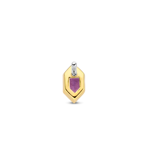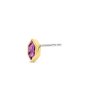 Deze TI SENTO single vergulde stud 7944PU_H is voorzien van een stralende amethistpaarse steen, gecombineerd met de luxe van een geelvergulde zetting. De intens paarse tint straalt een gevoel van elegantie en mystiek uit. De paarse steen is veilig gezet binnen vergulde geometrische kaders, waardoor haar allure wordt versterkt en het een vleugje pracht en praal toevoegt aan het geheel. De stud is volledig vervaardigd uit premium 925 sterling zilver en verguld voor een stijlvol en warm accent. De vlindersluiting aan de achterkant zorgt voor een comfortabele en veilige sluiting, zodat je het zowel overdag als 's avonds zorgeloos kunt dragen. Steek je haar op, combineer het met andere single oorbellen en laat het de show stelen. Deze single oorbel is volledig nikkelvrij en hypoallergeen.