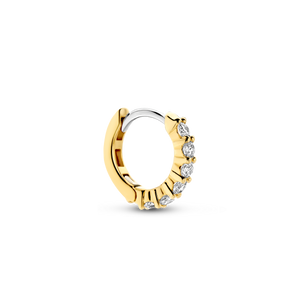 Deze TI SENTO enkelvoudige vergulde huggie 7956ZY_H pronkt met een stroom oogverblindende kubieke zirkonia stenen die luxe elegantie en verfijning uitstralen. Hij is gemaakt van eersteklas 925 sterling zilver en is verguld voor een vleugje glans. De oorbel heeft een diameter van 12 mm voor een comfortabele en nauwsluitende pasvorm. De luxe vergulde afwerking versterkt de schoonheid van de huggie, waardoor het een ingetogen statement maakt, geschikt voor elke gelegenheid. Het kleine formaat en veelzijdige ontwerp maken het ideaal om solo te dragen of in lagen met andere enkele oorbellen voor een onweerstaanbare asymmetrische Ear Party. Net als al onze sieraden is deze vergulde huggie nikkelvrij en hypoallergeen, waardoor je niet alleen verzekerd bent van stijl, maar ook van comfort en kwaliteit.