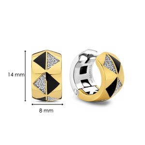 Verlies jezelf in tijdloze elegantie met de TI SENTO gold-plated silver Earrings 7987BL. Gemaakt van 925 sterling zilver en verguld met een stralende goudkleur, deze statement-stukken kenmerken een fascinerend spel van geometrische vormen. Zwarte stenen inleg en tiny, fonkelende witte cubic zirconia stenen creëren een weelderige juweel. Deze oorbellen vieren moderne luxe, herinnerend aan de weelde en verfijning van vervlogen tijden. Het gedurfde ontwerp en de luxe materialen maken ze tot werkelijk onvergetelijke stukken. Geef je dagelijkse look extra flair met deze tijdloze schoonheid. Draag ze solo voor een gedurfde uitspraak of stapel ze met andere TI SENTO oorbellen voor een samengestelde ensemble die vertrouwen en verfijning uitstraalt.