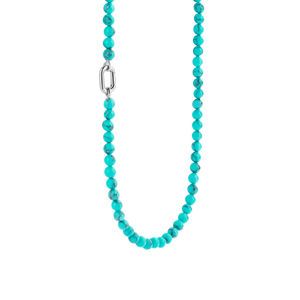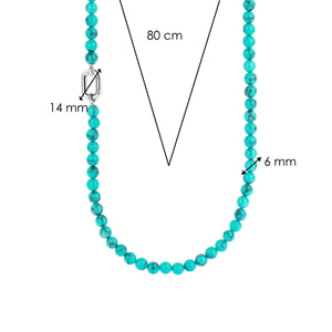 Dit zilveren TI SENTO collier 34050TQ is een prachtige mix tussen levendige turquoise stenen en een tijdloos ontwerp. Het collier Het collier is afgewerkt met een zilveren schakelslot dat een vleugje verfijning en veelzijdigheid uitstraalt. De combinatie van de serene turquoise stenen en de strakke zilveren schakel creëert een accessoire dat moeiteloos overgaat van een casual naar een formele setting en een vleugje kleur toevoegt aan elk ensemble. Het collier is gemaakt van eersteklas 925 sterling zilver en is platina geplateerd om hem te beschermen tegen dagelijks gebruik en om hem stralend te houden. Draag deze turquoise collier als een op zichzelf staand statement sieraad of combineer hem met andere colliers om een persoonlijke en chique look te creëren. De levendige turquoise stenen stralen lichtheid en vreugde uit en brengen je rechtstreeks naar de Middellandse Zee. Verrijk je stijl met de verfrissende energie van turquoise en de klassieke charme van zilver, waardoor dit sieraad een must-have accessoire is dat geïnspireerd is op de natuur. Net als al onze sieraden is deze ketting nikkelvrij en hypoallergeen, wat niet alleen stijl belooft, maar ook comfort en kwaliteit die de tand des tijds doorstaat.