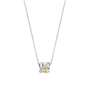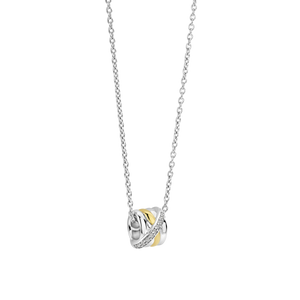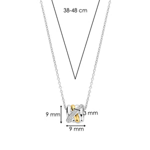 Geniet van het fascinerende samenspel van texturen met deze TI SENTO vergulde zilveren ketting 34059ZY/42. Gemaakt van 925 sterling zilver en verzilverd voor een blijvende glans, bevat deze ketting een reeks verbonden ringen, afwisselend in zilver en goudkleurig verguld. Een delicate ketting, versierd met een schitterende pavé van witte zirkonia steentjes, loopt sierlijk door de ringen, wat zorgt voor een verfijnd maar gedurfd ontwerp. Deze ketting is een eerbetoon aan modern sieradenontwerp en biedt een gedurfd maar elegant statement. De verfijnde details en de contrasterende texturen creëren een boeiende wisselwerking van licht en schaduw. Til je dagelijkse look naar een hoger niveau met dit prachtige minimalistische stuk. Draag het solo voor een verfijnd statement of gelaagd met andere TI SENTO kettingen voor een persoonlijke touch die zelfvertrouwen en allure uitstraalt. Zorgvuldig gemaakt voor de gevoelige huid, is deze nikkelvrije en hypoallergene ketting ontworpen voor langdurig comfort en kwaliteit.