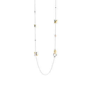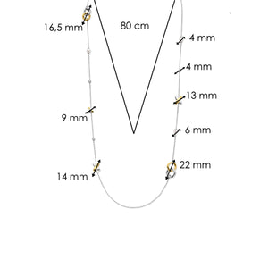 Ontdek een betoverende mix van texturen en metalen met deze TI SENTO vergulde zilveren ketting 34061ZY. Gemaakt van 925 sterling zilver en verzilverd voor een blijvende glans, bevat deze ketting een reeks betoverende bedeltjes: kruisen en vervlochten cirkels in zilver en goudkleurig verguld, gecombineerd met transparante witte stenen. Elk element voegt een vleugje verfijning en finesse toe aan het ontwerp. Deze ketting is een eerbetoon aan de kunst van modern sieradenontwerp, met een gedurfd maar verfijnd statement. De verfijnde details en contrasterende texturen creëren een opvallend effect. Verhoog je dagelijkse look met dit prachtige stuk. Draag het solo voor een minimalistisch statement of gelaagd met andere TI SENTO kettingen voor een persoonlijke touch die zelfvertrouwen en allure uitstraalt. Zorgvuldig gemaakt voor de gevoelige huid, is deze nikkelvrije en hypoallergene ketting ontworpen voor langdurig comfort en kwaliteit.