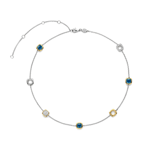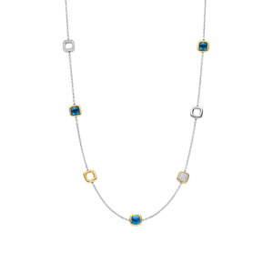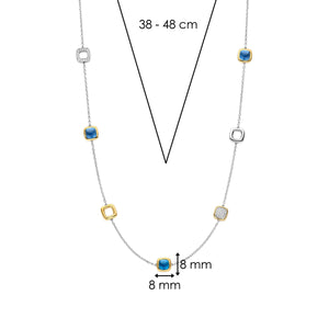 De TI SENTO ketting 34079DB straalt verfijnde elegantie uit, met vakmanschap en tijdloze schoonheid die elkaar perfect aanvullen. Vakkundig vervaardigd uit 925 sterling zilver, heeft dit ontwerp een delicate ketting met een reeks opvallende kussenvormige bedels. Diepblauwe stenen, gezet in stralende goudgekleurde omlijstingen, brengen een rijke intensiteit in het ontwerp, terwijl open kussenvormen en pavé-set cubic zirconia accenten textuur en moderne intrige toevoegen. Het samenspel van solide en open vormen creëert een ritme van licht en schaduw, waardoor diepte en dimensie aan de slanke silhouet van de ketting wordt toegevoegd. Dit veelzijdige stuk combineert moeiteloos tijdloze schoonheid met een eigentijdse flair. Het is nikkelvrij en hypoallergeen, wat zorgt voor luxe comfort gedurende de hele dag. Of je het solo draagt voor een subtiele kleuraccent of in lagen voor een gedurfder statement, deze ketting is een viering van ingetogen verfijning – perfect om elke outfit te verrijken.