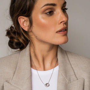 Deze ketting van TI SENTO heeft als hanger 2 cirkels die door elkaar heen lopen. Een symbool dat vaak wordt gezien als relatiesymbool. De verbondenheid die een goede vriendschap, relatie of een huwelijk met zich meebrengt wordt uitgebeeld door de 2 cirkels die door elkaar heen lopen. Één van de cirkels is glad zilver en de andere cirkel is gezet met witte zirkonia's. De ketting en de hanger zijn gemaakt van gerhodineerd sterling zilver. Dit materiaal behoudt landurig de glans. Bij de sluiting heeft het de ketting een verlengstukje, met behulp hiervan kunje deze op de gewenste lengte dragen.