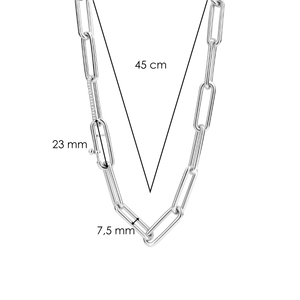 Dit TI SENTO gesloten zilveren collier 3937ZI heeft een stroom van zilveren schakels die sluiten met een zilveren slotje. De ketting is gemaakt van 925 sterling zilver en voorzien van een rijke coating van rhodium om het te beschermen en de glans te behouden. De extra veilige sluiting is speciaal ontworpen zodat dit sieraad altijd bij je blijft. De ketting is 45 cm lang. Hang een of meerdere bedels aan de schakels om je ketting te personaliseren en je eigen piece of art te creëren.
