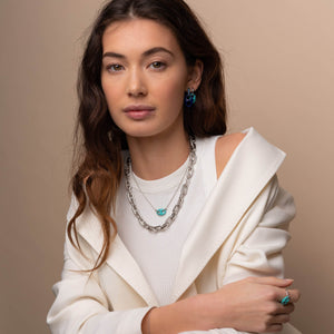 Het collier heeft een standaardlengte van 38 cm en heeft een verlengstuk van 10 cm. Hierdoor kan je het collier op 5 verschillende lengtematen dragen, op 38 cm, 40 cm, 42 cm, 45 cm en 48 cm.