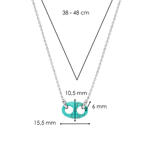 Het design van deze TI SENTO zilveren ketting 3987TQ is verrijkt met een turquoise koffieboon-charm. Een klassiek symbool in een nieuw, speels gedurfd jasje. De ketting is gemaakt van 925 sterling zilver. Met haar frisse turquoise tinten om je nek is je look altijd compleet. De lengte van de ketting is 42 cm.