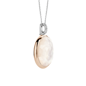 Deze ovale TI SENTO hanger is gemaakt van gerhodineerd sterling zilver. De hanger is gezet met een parelmoer doublet in een strakke gladomzetting. Deze zetting is voorzien van een rosé plated laag. ... lees meer