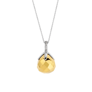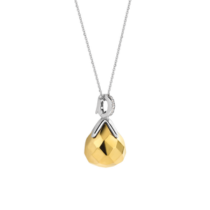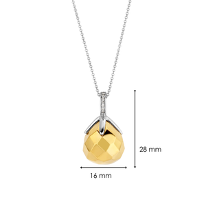 Deze iconische goldplated TI SENTO zilveren hanger 6791SY heeft een witte zirkonia pavé op de klip. De klassieke TI SENTO Flowerbud in een nieuw ontwerp. Een prachtig vintage statement sieraad.