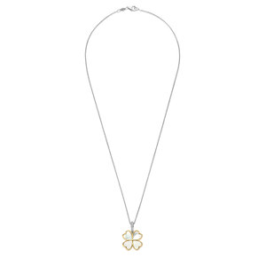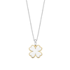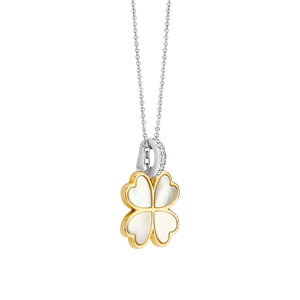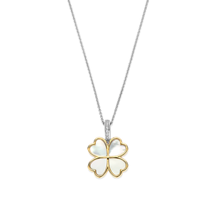 De TI SENTO klaverhanger 6821MW is een symbool van geluk, elegantie en moeiteloze charme. Gemaakt van hoogwaardig 925 sterling zilver, is dit betoverende klavertje vier omlijst met een stralende geelgouden kleur, wat de zachte glans van de parelmoeren inleg accentueert. Delicaat maar opvallend, het is een sieraad dat zowel betekenis als schoonheid in perfecte harmonie vangt. De hanger wordt geleverd met een sierlijke zilveren collier van 45 cm. Opgehangen aan een platina vergulde zilvergekleurde clipring, versierd met pavé gezette cubic zirconia, vangt deze hanger het licht met subtiele schittering. Bevestig het aan een van je favoriete kettingen om een gepersonaliseerde look te creëren die uniek is. Of het nu gedragen wordt als geluksbrenger of gelaagd voor een moderne, samengestelde uitstraling, de verfijnde details en tijdloze symboliek maken het een instant klassieker. Nikkelvrij en hypoallergeen, het belooft luxueus comfort bij elk draagmoment. Een gouden vleugje fortuin, klaar om overal met je mee te gaan.