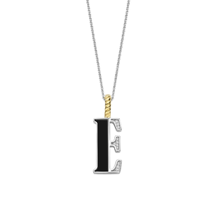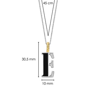 Omarm gedurfde verfijning met deze TI SENTO vergulde zilveren Letter E Hanger 6840BL_E. Deze stijlvolle hanger bevat een slanke zwarte steen die de letter "E" vormt, in scherp contrast met het sprank... lees meer