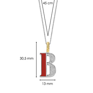 Omarm een levendige stijl met deze TI SENTO vergulde zilveren Letter B Hanger 6840CR_B. Deze betoverende hanger heeft een rode steen die de letter "B" vormt, wat een opvallend contrast creëert met een sprankelend pavé van witte cubic zirconia. Gemaakt van hoogwaardig 925 sterling zilver, vervolgens verzilverd om het te beschermen en glanzend te houden. De clipring is verguld wat warmte toevoegt aan de levendige energie van de rode steen. De rode steen straalt een tijdloze aantrekkingskracht uit en voegt een vleugje levendige kleur toe aan je halslijn. De letter B symboliseert balans en harmonie, de perfecte mix van kracht en mededogen. Deze hanger is meer dan alleen sieraden; het is een speelse uiting van je individualiteit. Draag het solo voor een gedurfd statement of combineer het met andere letters of hangers voor een trendy, gelaagde look. De hanger wordt geleverd met een delicate zilveren ketting van 45 cm. Vakkundig gemaakt voor de gevoelige huid, deze nikkelvrije en hypoallergene hanger garandeert langdurig comfort en kwaliteit.
