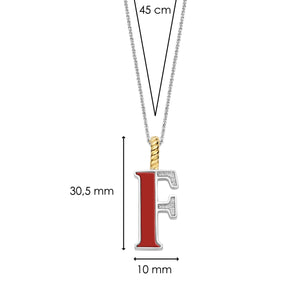 Voeg een levendige touch toe met deze TI SENTO vergulde zilveren Letter F Hanger 6840CR_F. Deze opvallende hanger bevat een vurige rode steen die de letter "F" vormt, in scherp contrast met het sprankelende pavé van witte zirkonia. Gemaakt van premium 925 sterling zilver en verzilverd om het te beschermen en stralend te houden. De clipring is verguld wat warmte toevoegt aan de energie van de rode steen. De steen straalt een tijdloze aantrekkingskracht uit en voegt een vleugje levendige kleur toe aan je hals. De letter F staat voor focus en vooruitgang, en vertegenwoordigt ambitie en doorzettingsvermogen. Deze hanger is meer dan alleen een sieraad; het is een krachtige uitdrukking van jouw persoonlijkheid. Draag het solo voor een gedurfd statement of combineer het met andere letters of hangers voor een trendy, gelaagde look. De hanger wordt geleverd met een fijne zilveren ketting van 45 cm. Met zorg vervaardigd voor een gevoelige huid, biedt deze nikkelvrije en hypoallergene hanger langdurig comfort en kwaliteit.
