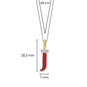 Voeg een levendige touch toe met deze TI SENTO vergulde zilveren Letter J Hanger 6840CR_J. Deze opvallende hanger bevat een vurige rode steen die de letter "J" vormt, in scherp contrast met het sprankelende pavé van witte zirkonia. Gemaakt van premium 925 sterling zilver en verzilverd om het te beschermen en stralend te houden. De clipring is verguld wat warmte toevoegt aan de energie van de rode steen. De steen straalt een tijdloze aantrekkingskracht uit en voegt een vleugje levendige kleur toe aan je hals. De letter J staat voor vreugde en reis, en vertegenwoordigt avontuur en verkenning. Deze hanger is meer dan alleen een sieraad; het is een krachtige uitdrukking van jouw persoonlijkheid. Draag het solo voor een gedurfd statement of combineer het met andere letters of hangers voor een trendy, gelaagde look. De hanger wordt geleverd met een fijne zilveren ketting van 45 cm. Met zorg vervaardigd voor een gevoelige huid, biedt deze nikkelvrije en hypoallergene hanger langdurig comfort en kwaliteit.