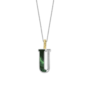 Elke hanger is uniek – de malachietgroene steen met zijn kenmerkende aderstructuur, geïnspireerd op echt malachiet, straalt natuurlijke elegantie uit. De subtiele variaties in kleurtinten en patronen maken elke hanger een uniek en tijdloos statement, ontworpen om te koesteren. Omarm de kracht van transformatie met deze TI SENTO vergulde zilveren Letter U Hanger 6840MA_U. Deze fascinerende hanger heeft een prachtige malachietgroene steen die de letter ""U"" vormt, versierd met een fonkelende pavé van witte cubic zirconia. Gemaakt van premium 925 sterling zilver, verzilverd om het te beschermen en glanzend te houden. De clipring is verguld met een rijke goudkleur voor een weelderige en warme uitstraling. De malachietgroensteen straalt energie van vernieuwing uit en herinnert je aan je eigen potentieel voor groei en transformatie. De letter U staat voor ongekende stijl en onmiskenbare aanwezigheid, en symboliseert zelfverzekerde individualiteit en de kracht om je eigen trends te bepalen. Deze hanger is meer dan een sieraad; het is een symbool van je persoonlijke evolutie. Draag hem solo voor een opvallend statement of combineer hem met andere letters of hangers voor een trendy, gelaagde look. De hanger wordt geleverd met een delicate zilveren ketting van 45 cm. Zorgvuldig vervaardigd voor de gevoelige huid, deze nikkelvrije en hypoallergene hanger biedt blijvend comfort en kwaliteit.