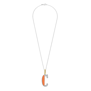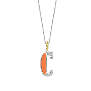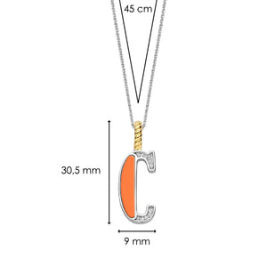 Maak een gedurfd statement met deze TI SENTO vergulde zilveren Letter C Hanger 6840OR_C. Deze levendige hanger heeft een warme oranje steen die de letter "C" vormt, wat een opvallend contrast creëert... lees meer