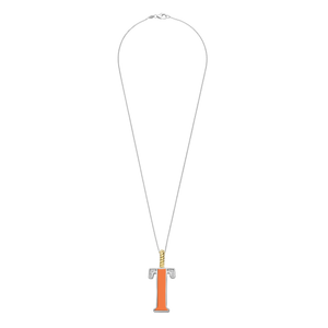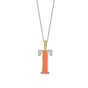 Omarm gedurfde expressie met deze TI SENTO vergulde zilveren Letter T Hanger 6840OR_T. Deze levendige hanger heeft een warme oranje steen die de letter ""T"" vormt, in opvallend contrast met een fonk... lees meer