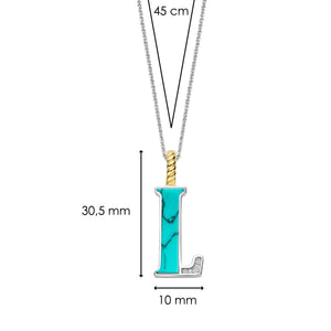 Omarm eindeloze zomer met deze TI SENTO vergulde zilveren Letter L Hanger 6840TQ_L. Deze levendige hanger bevat een verfrissende turquoise steen die de letter "L" vormt, in prachtig contrast met het ... lees meer