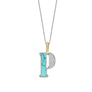 Omarm eindeloze zomer met deze TI SENTO vergulde zilveren Letter P Hanger 6840TQ_P. Deze levendige hanger heeft een verfrissende turquoise steen die de letter "P" vormt, in prachtig contrast met het ... lees meer