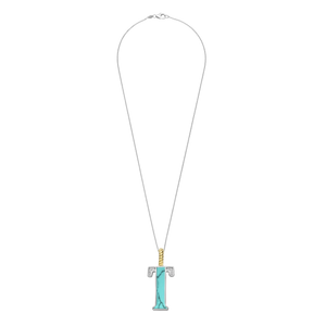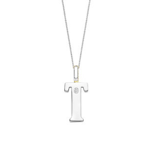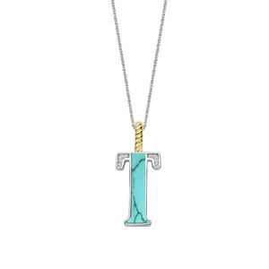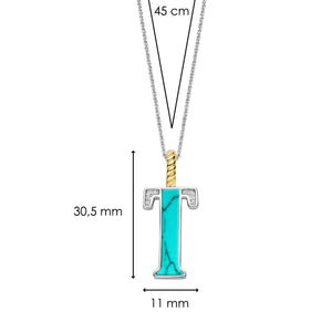 Omarm de eindeloze zomer met deze TI SENTO vergulde zilveren Letter T Hanger 6840TQ_T. Deze levendige hanger heeft een verfrissende turquoise steen die de letter ""T"" vormt in prachtig contrast met ... lees meer