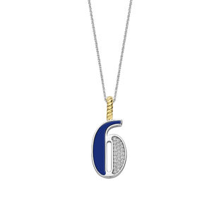 Omarm hemelse wijsheid met deze TI SENTO Nummer Zes Zilveren Hanger 6841LB_6. Gemaakt van premium 925 sterling zilver en verzilverd voor een blijvende glans, toont deze hanger een opvallend ontwerp van het cijfer zes. Het cijfer is versierd met een betoverende lapisblauwe steen, die de mysterie van de nachtelijke hemel oproept. Een sprankelend pavé van witte cubic zirconia steentjes voegt een vleugje sterrenstof toe. De clipring is verguld, wat een luxueuze uitstraling geeft. Het cijfer zes staat voor verantwoordelijkheid, zorgzaamheid en huiselijkheid. Het benadrukt het belang van stabiliteit en het creëren van een harmonieuze omgeving. Lapisblauw, een steen van wijsheid en waarheid, geeft deze hanger een gevoel van kosmische balans en aarding. Deze hanger is perfect voor de moderne vrouw die op zoek is naar een vleugje hemelse elegantie. Laat deze hanger jouw kosmische kompas zijn. Draag hem solo voor een krachtig statement of combineer hem met andere sieraden voor een gelaagde look die je innerlijke wijsheid weerspiegelt. De hanger wordt geleverd met een fijne zilveren ketting van 45 cm en is hypoallergeen en nikkelvrij, wat langdurig comfort en kwaliteit garandeert.