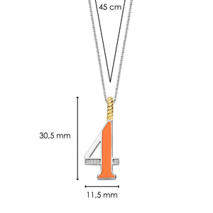 Omarm levendige energie met deze TI SENTO Nummer Vier Zilveren Hanger 6841OR_4. Gemaakt van premium 925 sterling zilver en verzilverd voor een blijvende glans, toont deze hanger een prachtig ontwerp van het cijfer vier. Het cijfer is versierd met een levendige oranje steen, die warmte en optimisme uitstraalt. Een pavé van witte cubic zirconia steentjes maakt het ontwerp compleet en zorgt voor een sprankelend contrast. De clipring is verguld voor een luxueuze uitstraling. Het cijfer vier symboliseert stabiliteit, fundament en harmonie. Het benadrukt het belang van het opbouwen van een stevige basis voor groei. Oranje, een kleur die synoniem staat voor creativiteit en enthousiasme, geeft deze hanger een dynamische energie. Deze hanger is perfect voor de moderne vrouw die op zoek is naar een vleugje zelfvertrouwen. Draag het solo voor een krachtige uitstraling of combineer het met andere sieraden voor een persoonlijke, gelaagde stijl. De hanger wordt geleverd met een fijne zilveren ketting van 45 cm en is hypoallergeen en nikkelvrij.