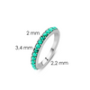Deze ring uit de TI SENTO collectie is vervaardigd uit gerhodineerd sterling zilver en één rij met kristallen. Deze zijn geslepen in een ronde vorm en zijn met de hand gezet. De strakke uitvoering van de ring zorgt voor een naadloze aansluiting op andere ringen. Dit sieraad is eenvoudig te combineren met andere ringen. De turquoise kleurige look geeft de combinatie met andere ringen een extra twist. In de TI SENTO collectie zijn vele ringen te vinden, waar combinaties mee kunnen worden gemaakt volgens het TI SENTO Mix & Match concept. Deze mooie ring is ook perfect te dragen met de bijpassende oorbellen en ketting.