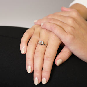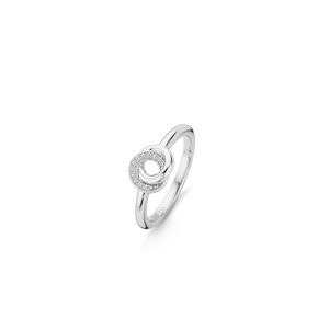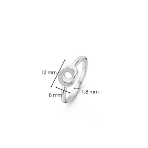 Klassiek is deze ring met haar oneindige circulaire bewegingen van het zilver naar de witte zirkonia pavé zetting. Ze is tijdloos.