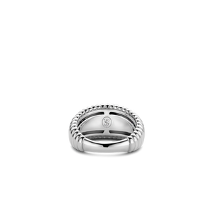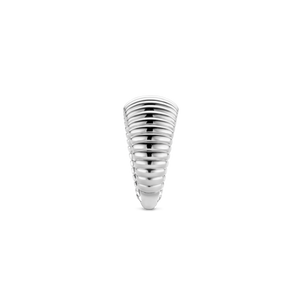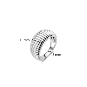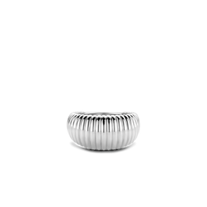 Flavia A. This ring is an elegant piece with a modern ribbed texture that wraps around the band. It has a brilliant shine that stands the test of time. Its bold, minimalist design pairs beautifully with other rings, making it a versatile addition to any jewelry collection. Stylish and durable, this ring is perfect for those who want a trendy look.