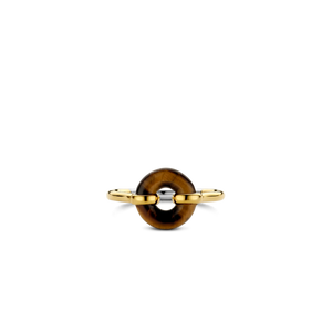 Het pronkstuk van deze TI SENTO vergulde zilveren ring 12237TE is de bruine tiger-eye steen in het midden. De vergulde ring is gemaakt van 925 sterling zilver. De ronde vorm maakt het een artistiek geheel. Laat je inspireren door de krachtige tiger-eye steen, met haar palet vol aardse en energierijke kleuren.