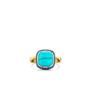 Deze TI SENTO vergulde ring 12330TQ heeft een grote levendige turquoise kussenvormige steen in een luxe donkerblauwe pave zetting. Een harmonieuze mix van strakke vormen en levendige kleuren. De funk... lees meer