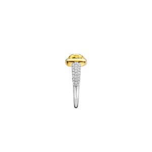 Vat de stralende zomer met deze TI SENTO ring 12331DY, een meesterwerk van verfijnde elegantie. Het middelpunt is een doorschijnende gele cushion-geslepen steen, met de hand gezet in een vergulde zet... lees meer