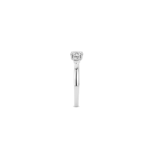 Deze prachtige TI SENTO ring is een echte klassieker. Het middelste kristal is geslepen in een briljant slijpvorm en wordt aan beide zijden vergezeld door twee kleinere zirkonia's in dezelfde slijpvorm, om het design in evenwicht te houden. De rhodiumlaag over het zilver zorgt voor een extra glans en een langere levensduur van het sieraad. Deze TI SENTO ring is tijdloos en stijlvol en daardoor goed te combineren met vrijwel ieder sieraad uit de collectie.